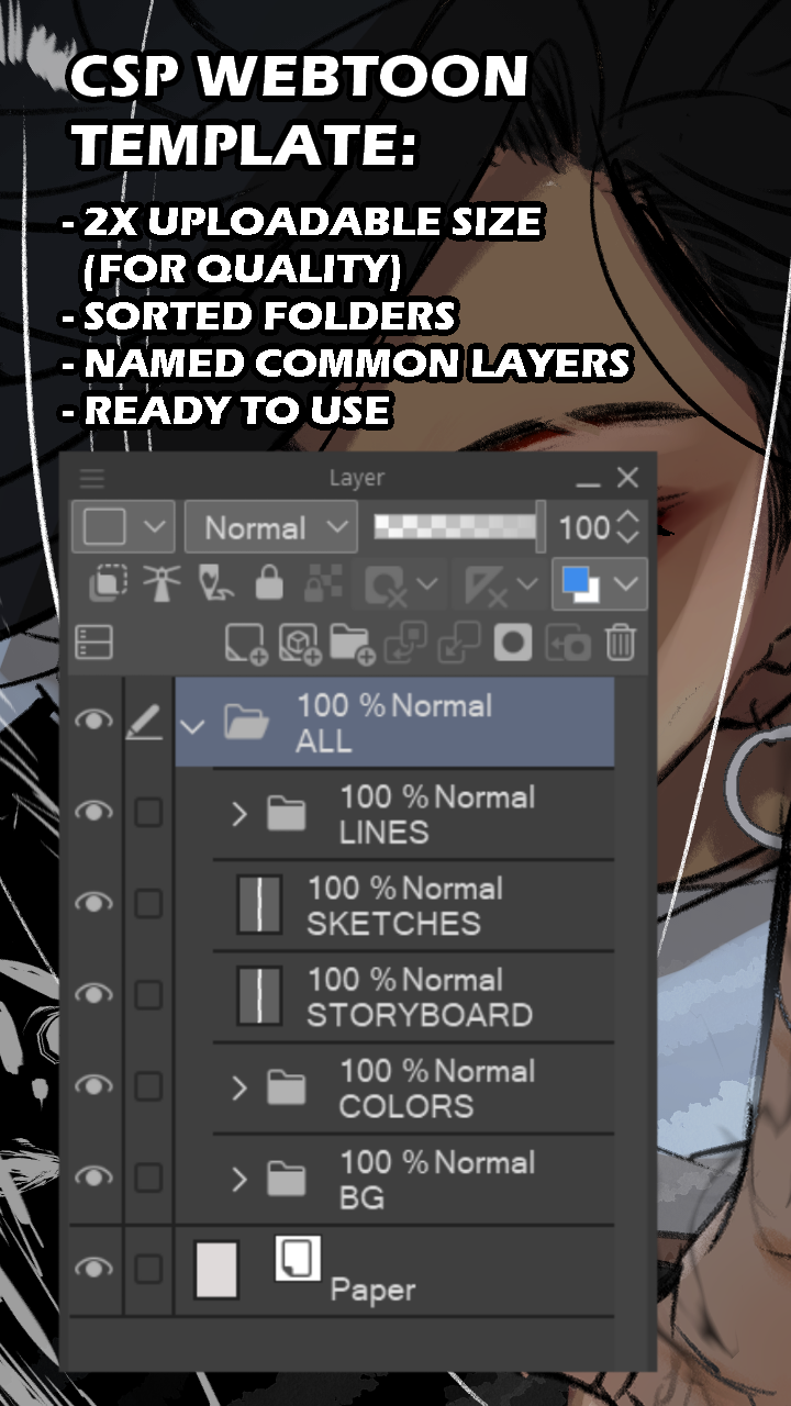 Ever wanted to just start your webtoon file without having to recreate all those layers? naming each folder? If you're like me and you want a quick folder sorted out to Line art, Colors & Background - this is for you!